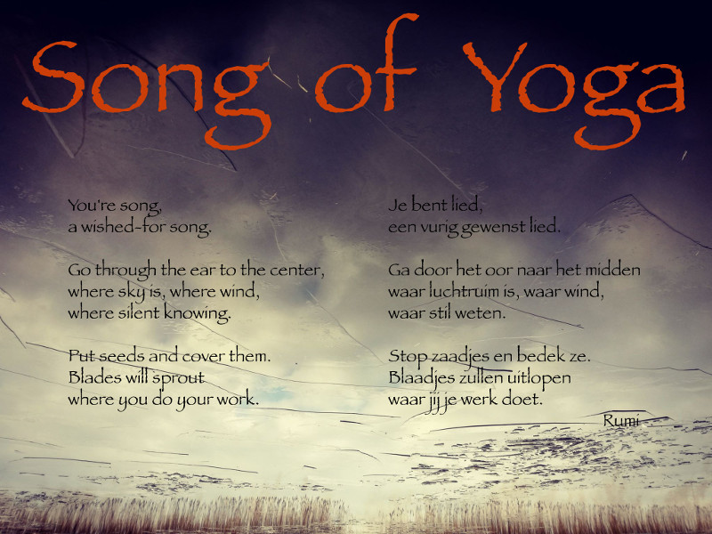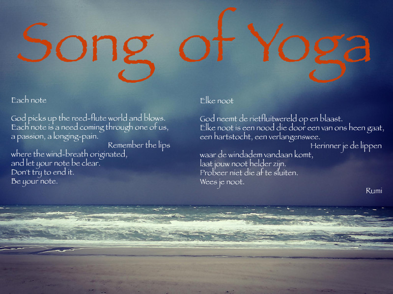 So the yoga concerts are ‘nights’, in which the magic crosses our senses and we meet ourselves. And then, Rilke arrives at those final monumental lines, that describe the paradox of the mystics so strikingly. On the one hand, we as living creatures move continuously, our awareness is a river flowing. During yoga concerts, we often do an exercise to allow our attention to ‘move freely’ and be curious where it goes. On the other hand, there is something completely still and continuously the same. In all our experiences, we are ‘present’. This ‘conscious being’ is like the bedding of a river. The yoga concerts are a sinking in this ‘silence’ or ‘emptiness’, in which you ‘just be’.