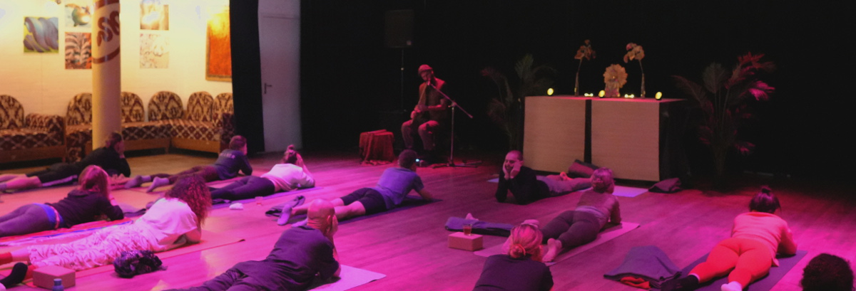 Veel muzikanten waar ik mee samenwerk, zijn als musicus geschoold op een conservatorium en gemazeld op de podia van mainstream klassieke of geïmproviseerde muziek. De Italiaanse harpiste en zangeres Fralalai vond haar eigen weg in de spirituele niche en maakte tijdens de yogaconcerten indruk met haar improvisatietalent en diepte in haar muziek. De tederheid van haar harp, de vurige roep van haar drums en haar engelachtige stem: ze maken stil. Het leidde al eens tot een speciaal yogaconcert waarin de poëzie van Mary Oliver centraal stond: Journey to Blackwater Pond. Bij deze 'Zwartwaterplas', dichtte Mary Oliver, 'zijn de opgerakelde wateren bezonken na een nacht van regen'. Zo brengt Fralalai ons ook bij donkere wateren in oude bossen, rakelt ze gevoelens op om ze met haar stem te doordrenken, verzachten en laten bezinken.